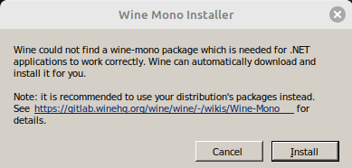 After these steps, Wine should be able to run both DEXi and DEXiWin using the "Running" commands above. Normally at runtime, Wine automatically detects additional components (Mono and Gecko) that are needed by the apps and requests your confirmation to install them in the background: